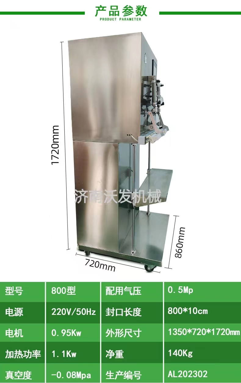 封口尺寸 | 800mm*10mm (可按要求增加到lOOOmm) | ||