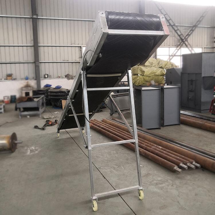 新型移动车载输送机主要有皮带机机架、托辊、滚筒、防滑输送带、电机减速机、升降支架等部分组成。整体轻量化设计,搬运方便,用完之后可以折叠起来不占地方。