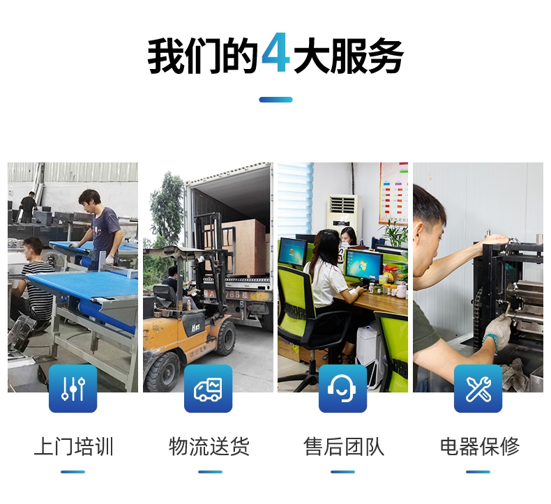 凡购买本公司的产品后,我们派技术人员到贵公司安装,调试及操作培训,至贵公司技术工能熟练操作。我公司的所有产品从你购买日起,机器配件保修期为一年,在保修期内,实行终身跟宗服务制。我们成熟技术和售后服务为客户解决一切后顾之忧,一旦承诺,终身相随。机器免费汽运送到需方单位,需技术人员上门的当天出发。一年后配件如因使用不当造成破损,只收取成本费。
