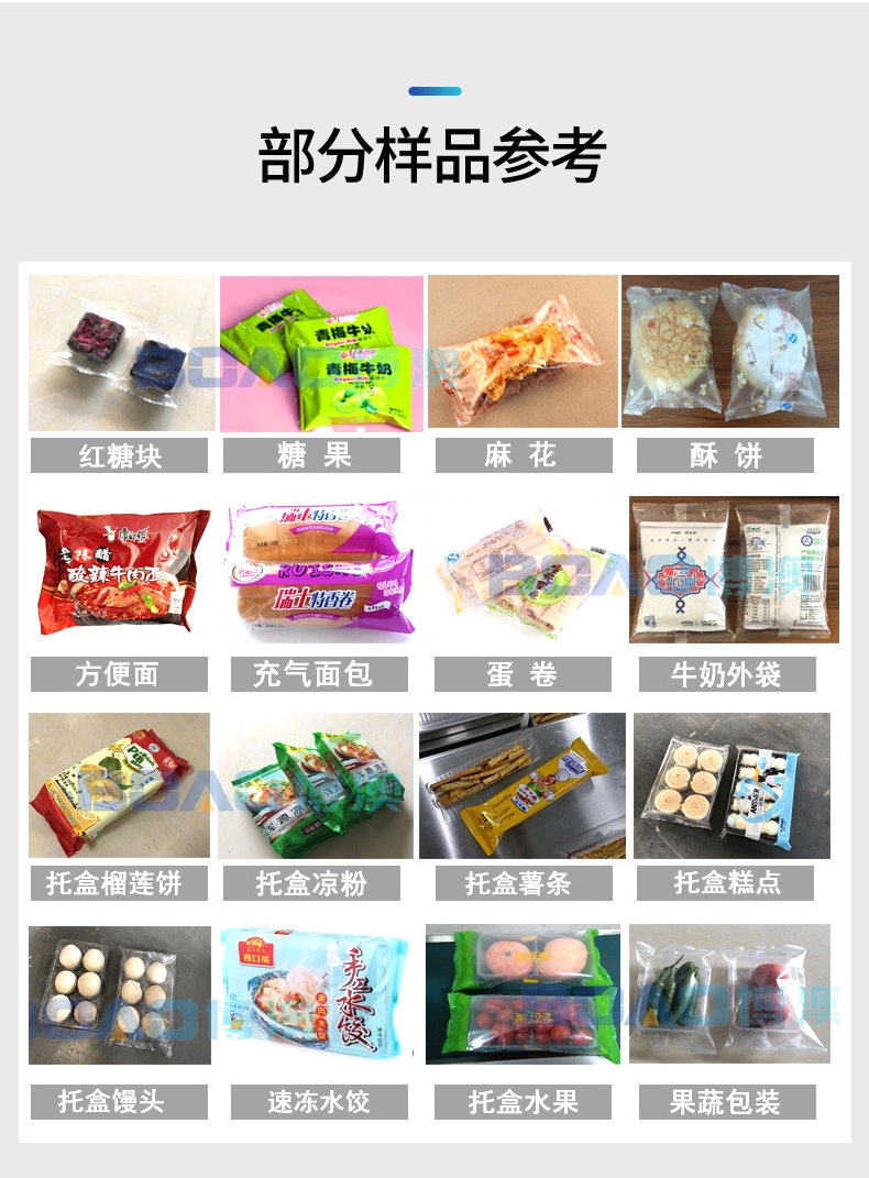 食品行业:饼干、月饼、糖果、面包、馒头、速食面、雪糕、巧克力、带托盘托盒食品、香肠、休闲食品、阿胶、肉松饼