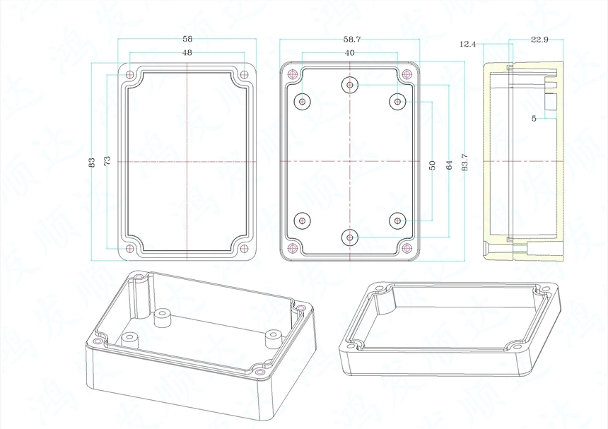 3、订货需要的图纸文件,机加工我们需要CAD文件,丝印或镭雕激光需要CorelDRAW文件,如果不能提供,本公司有的设计团队为您解决设计图纸的问题,您只需提供选定壳体后把焊接好的电子元器件的PCB板提供给我们即可。