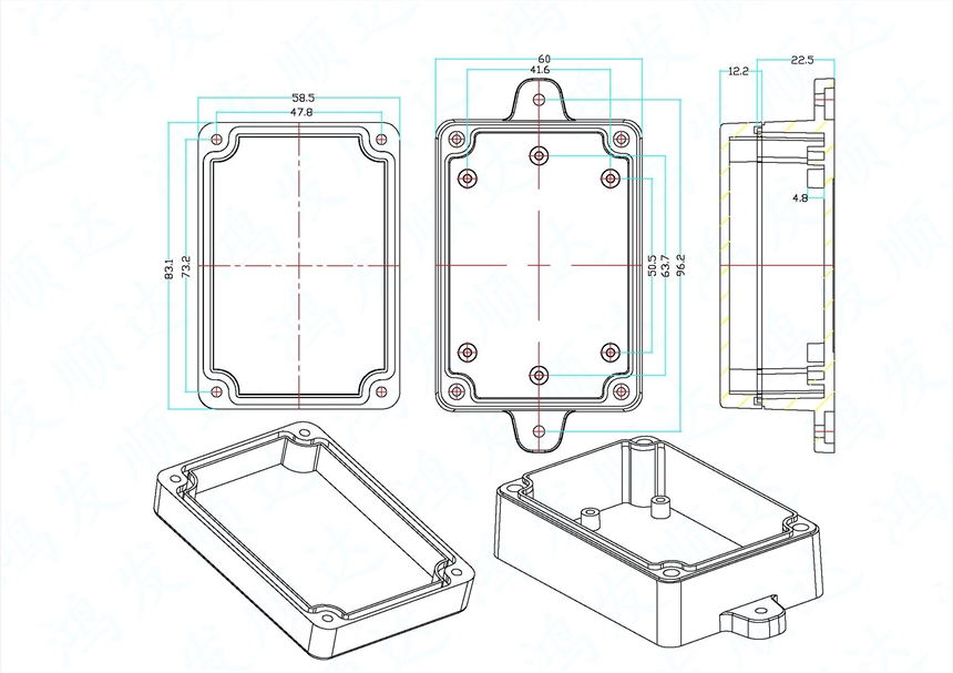 3、订货需要的图纸文件,机加工我们需要CAD文件,丝印或镭雕激光需要CorelDRAW文件,如果不能提供,本公司有的设计团队为您解决设计图纸的问题,您只需提供选定壳体后把焊接好的电子元器件的PCB板提供给我们即可。