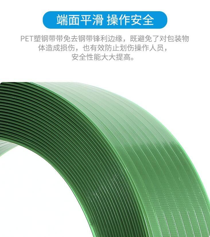 三,使用成本与安全性, PET打包带属于环保型打包带,绿色环保可以回收利用,适合可持续发展,而PP打包带不属于环保型打包带。PET打包带使用过程比钢带更安全。