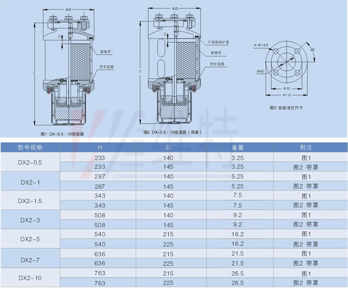 吸湿器与变压器常用配套一览表 | |