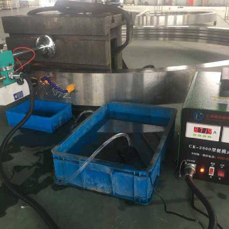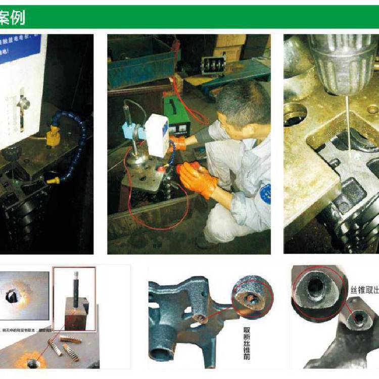 ??? CK-2000型取断丝锥机是上海锐巨机电设备有限公司 新研发的数字化大功率全自动便携式电火花机.主要适用于机械和金属行业中折断的丝锥、铰刀、钻头、螺丝的去除,该便携式电火花机输入功率为1200W,电磁吸盘平台可任意角度旋转,方便加工不同角度的工作面.加工的范围有:斜孔、直径孔、大跨距孔、异性孔、槽以及在轧辊上刻字、打标记等等.CK-2000型便携式电火花机由主机和电磁吸盘平台构成,所以体积小,重量轻,操作简单 适用 特别适合于大型工件上折断丝锥的取出,并可在合金钢、淬火钢、硬质合金等难以加工的材料上穿孔、扩孔.