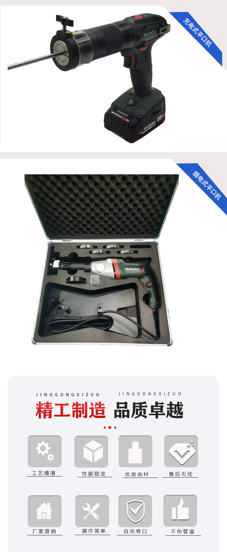 功能用途 | 该切断坡口机机采用机械式棘轮进刀,操作简单便捷;可用于管道的端面标准坡口加工,亦可用于对管道中间任意位置的切断及坡口加工 | ||