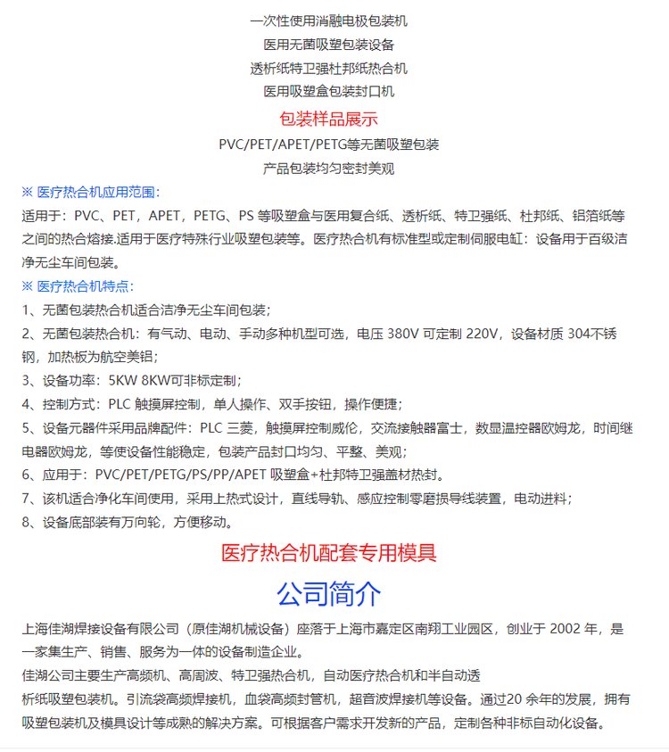 包装材料 | 透析纸,特卫强纸 吸塑盒热合 | ||