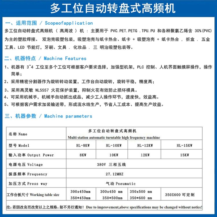 物料类型 | 吸塑包装机、高频热合机 | ||