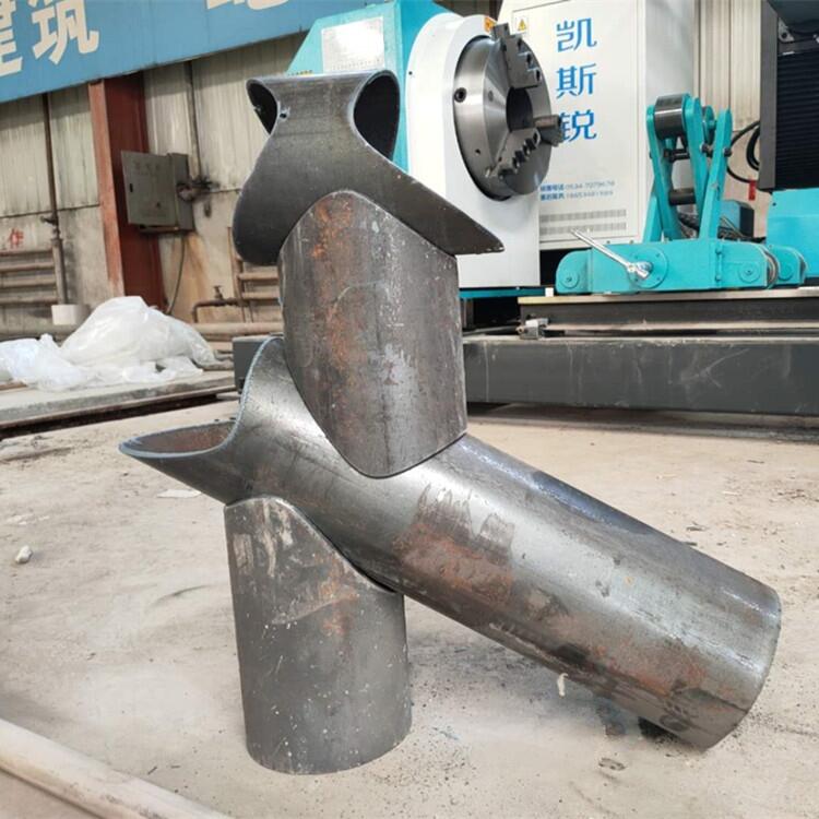 相贯线切割机在切割时,为了保证焊接的质量和可靠性,需要预留出一定角度的坡口,有定角度坡口和变角度坡口之分.所谓定角度坡口指的就是在切割过程中,支管上各个相贯节点处的素线与支管轴线始终保持一定数值的角度.然而实践证明,定角度坡口仅仅适用于两管垂直对心相交或者是各个节点处的二面角都比较大的情况.因为,二面角比较大,切割出来的坡口则可能过小;而二面角比较小,等离子圆管切割机切割出来的坡口则可能过大.这样就会大大影响切割后焊接的质量和可靠性,同时对于壁厚不大的钢管来说,在切割时甚至会熔断部分坡口,导致焊接无法正常进行.所谓变角度坡口指的是在整个切割过程中,各个节点处的切割角(当相贯接头为插入式时,切割角等于坡口角)始终随着二面角的变化而变化,这样切割出的坡口既均匀又可靠.。数控控制界面以图形与数据结合,操作十分简单:操作人员只需将主管和支管的半径,相交角度,管道切割设备切割速度等参数输入电脑后按动“启动”按钮、就能进行、预热、切割等自动操作。