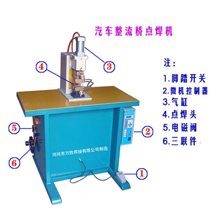 DNQ-16型台式气动精密脉冲点焊机,是为广大生产汽车发电机朋友特意设计制作的焊接桥式整流器(即雪崩二极管)的点焊机。该机配置气动精密焊接机具,焊接电极,微电脑焊接控制器等器件组成。具有焊接精度高,焊接质量稳定的台式点焊机。是广大生产桥式整流发电机的有力工具—迎喜牌脉冲点焊机。也可以焊接不锈钢洁具、餐具的边缘部位。