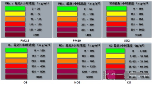 平台可对各类监测数据进行实时展示。将空气质量气体传感器数据、有毒气体应急监测数据汇入到统一平台,统一管理,综合展示。气体传感器数据以不同颜色代表不同污染级别。