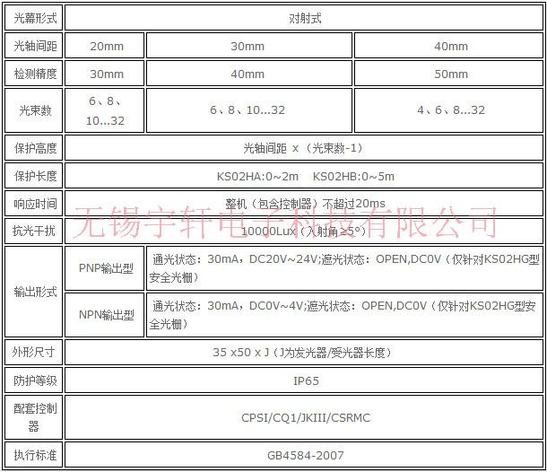 和其他危险场合的安全防护。ks02h型光幕标准配套cpsi型控制器、cq1型控制器或jkiii