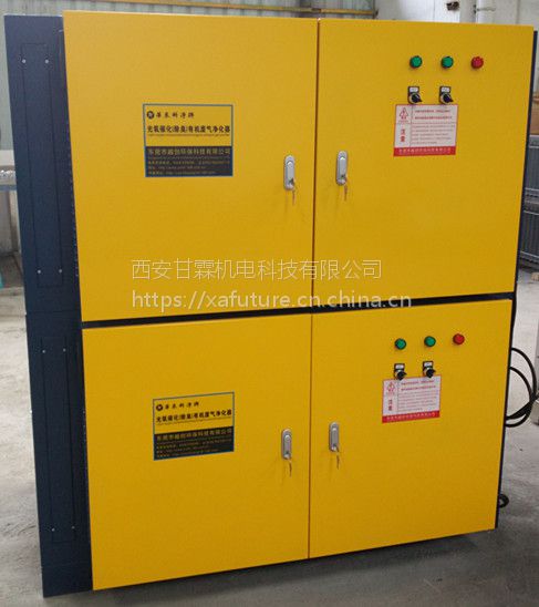 低温等离子:采用介质阻挡花冠放电技术,在空气湿度小于40%时,1米范围离子浓度大于160万,运用大流量变频高压电晕放电技术,改变传统模块结构,极大降低设备成本,采用双介质放电,尤其是正离子数量大大提高,氧化能力显著增强。利用特制的高能高臭氧uv紫外线光束照射联合低温等离子产生的离子氧来处理恶臭气体,改变恶臭气体。在外加电场的作用下,介质放电产生的大量携能电子轰击污染物分子,使其电离、解离和激发,然后便引发了一系列复杂的物理、化学反应,使复杂大分子污染物转变为简单小分子安全物质,或使有毒有害物质转变成无毒无害或低毒低害的物质,从而使污染物得以降解去除。因其电离后产生的电子平均能量在10ev 。