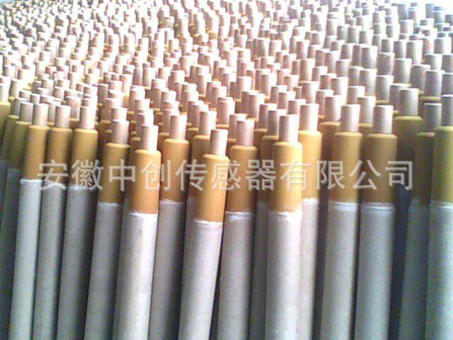 安徽中创传感器有限公司生产的定氧探头具有检测速度快、使用方便、精确度高的优点,使用中套上1.2米耐火纸管,用专用工业pc定氧仪,连接到测氧枪,再把测氧枪插入耐火纸管内,插入钢水中,所有过程测得的数据在8秒内快速完成,能满足钢铁生产中不同场合的(钢、铁、铜)液测量要求。对钢水中的成份和氧含量,钢水质量、成材率的消耗起着决定性的作用。本产品的制作工艺,已超过国外制造技术,属水平。随着沸腾、半镇静钢(外沸内静钢)和铝脱氧连铸钢生产的不断扩大及钢水精炼技术的广泛应用,迫切需要快速、准确、直接知道钢水中的氧含量,以便控制炼钢操作,提高钢质量,增加产量,减少加热时间,缩短化验分析时间,降低消耗,降低成本 。固体电解质浓差定氧技术就是为适应这些要求而发展起来的。在世界炼钢过程中,要炼出高水准的钢材,重要的程序就是对钢液多样式高精确度的含量检测。