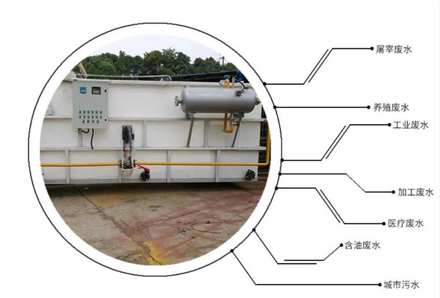 在给排水方面,预处理的水质,除一些含砂较多的原水水体以及含机械杂质较重的污水外,大部分都是质轻的悬浮颗粒。例如:湖泊、水库及部分江河中的藻类;植物残体及细小的胶体杂质;印染行业的染料颗粒;造纸、化纤行业的短纤维;炼油、化工行业的石油及有机溶剂的微滴;电镀和酸洗废水中的重金属离子;电泳漆废水等等;都是比重十分接近于水的轻质颗粒。对于这些原水,若沿用传统的沉淀方法,效果必然很差,尤其在冬季低温条件下,由于混凝和水力条件变劣,处理效果更难保证。可以想象,难以沉淀的絮粒,硬要使其下沉,势必事倍功半,倒不如因势利导,人为地向水体中导入气泡,使其粘附于絮粒上,从而大幅度地降低絮粒的整体密度,并借气泡上升的速度,强行使其上浮,以此实现快速的固液分离。从这个意义上来说,气浮技术的出现,是对重力沉降法的一次革命,它开拓了固、液分离技术的新领域。