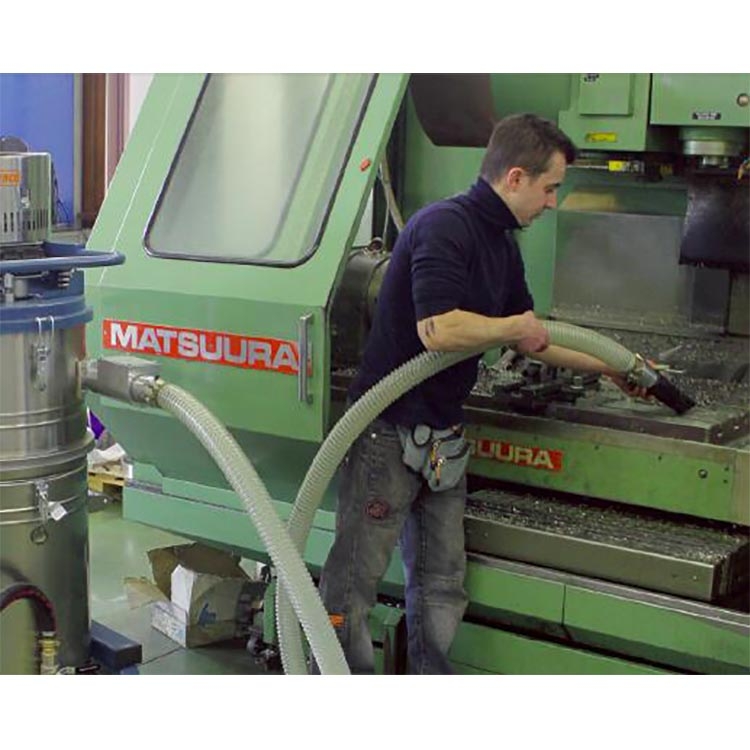 4. 反吹排液系统,与传统的抽吸泵不同的是,这款机器排液是通过机器的涡轮式电机产生的吸力来将液体排到集尘桶外,这避免了常用抽吸泵所经常发生的堵塞情况,即使是在铣削等废物槽内有淤泥的情况下,这款机器也可以轻松将液体排出;
