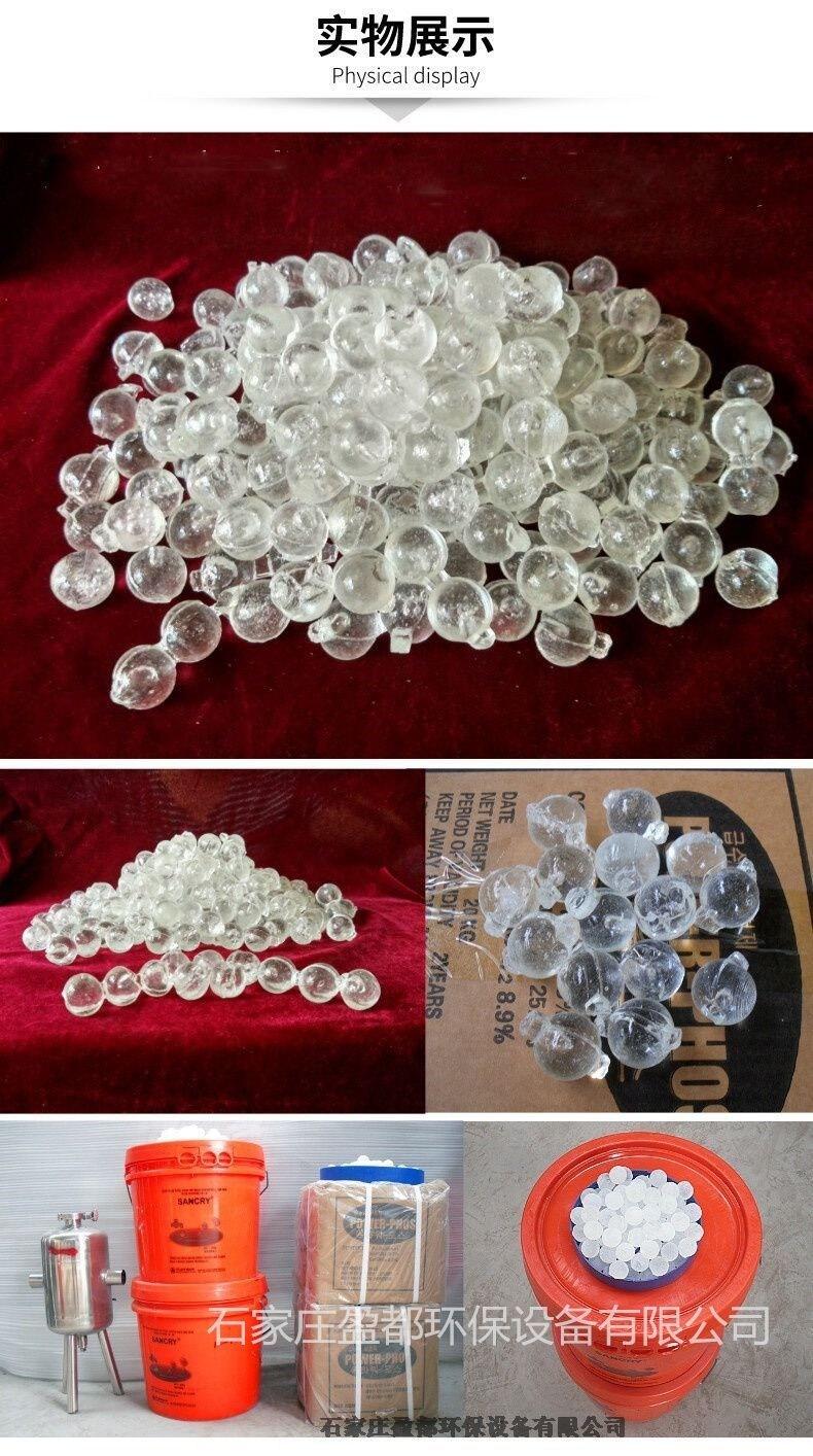 硅磷晶是玻璃状的小球,是聚磷酸盐/硅酸盐组成的微溶性聚合体。在水中聚磷酸盐能防止CaCO3的晶体生长和凝聚,并对铁离子起封闭作用,对氢氧化铁起分散作用。硅酸盐和聚磷酸盐更能使管道内表面形成保护膜,隔绝溶解氧,防止金属腐蚀。长期使用还可以清系统中原有的氧化铁垢,而黏附在它表面的碳酸盐类也可脱落。硅磷晶使用方便,不需维护、不耗动力,水头压力损失极小。用户要做的,仅是每隔3~6个月补充一次药剂即可。归丽晶在每吨水中只需1~3克,就可满足预期。