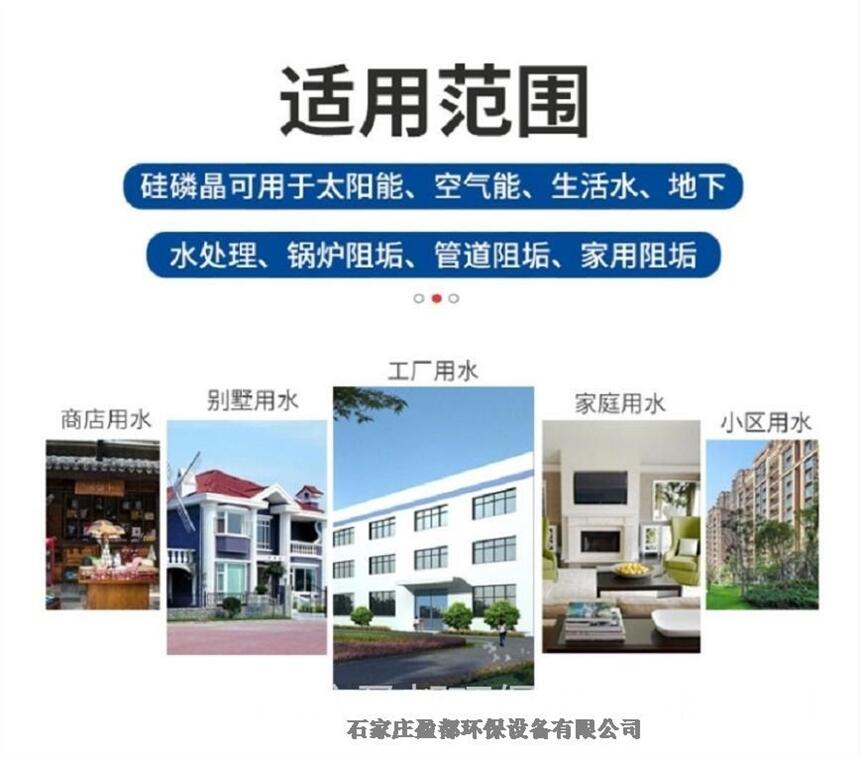 硅磷晶防锈阻垢剂适用多种水处理场合,除作为饮用水处理剂外,还广泛用于空调冷却水,热水换热器,制冰机,咖啡机,加湿器,洗碗机,水洗机,太阳能热水器,家用纯水机,大型纯净水处理设备反渗透膜等的阻垢缓蚀。