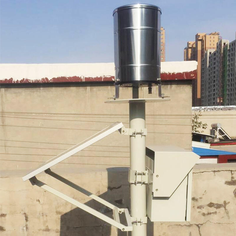 1.监测站可配接各种分辨率、脉冲输出的雨量传感器。由我公司原厂配置的翻斗式雨量传感器的工作原理是:承水口收集的雨水,经过装在承水口大漏斗上的过滤网,注入计量翻斗。它是一个双稳态结构,当一斗室接水时,另一斗室处于等待状态。当所接雨水容积达到设定值时,便在重力的作用下翻倒,之后处于等待状态。另一斗室处于接雨水状态。当其接水量达到预定值时,又自己翻倒,处于等待状态。在翻斗侧壁上装有磁钢,它随翻斗翻动时从干式舌簧管旁扫描,干式舌簧管平时处于断开状态,在翻斗翻动、磁钢扫描干式舌簧管的瞬间才闭合。这样翻斗翻动次数有磁钢扫描干式舌簧管通断并输出脉冲信号来计数,每记录一个脉冲信号便代表有0.2mm深的降水。