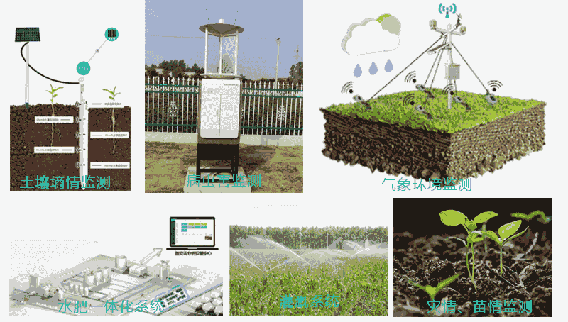 全面监测农田各方面环境要素, 气象、水环境、土壤环境、病虫害监测、水肥一体化、空气环境质量等。