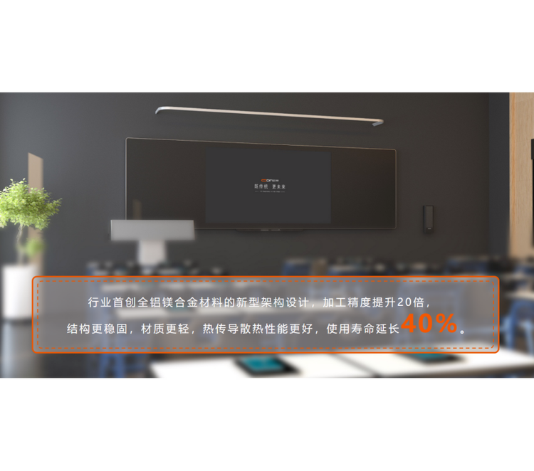 从第三代液晶模组开始,已经全面采用铝镁合金材料:质量轻、结构强解决了旧款黑板搬运途中重量大、易变形的痛点问题。五代更是沿用了此方案并逐步优化加强,目前86英寸五代黑板中间部分整机净重控制在65kg之内。