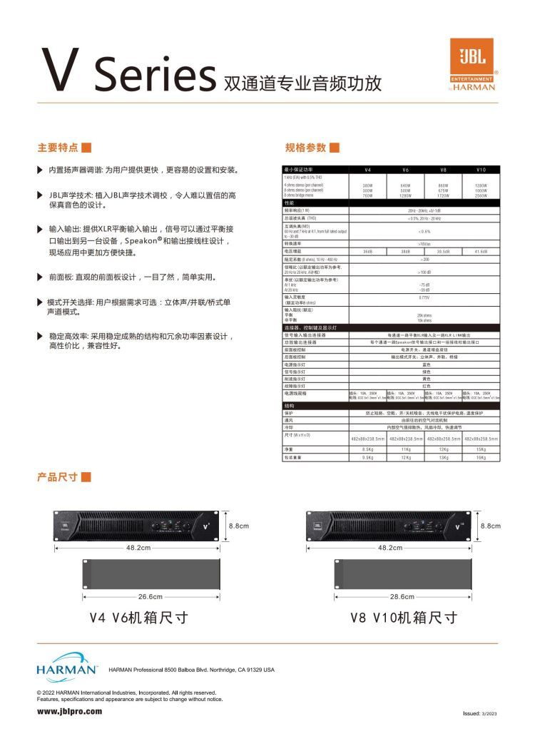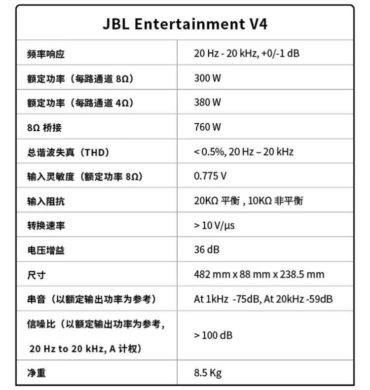 JBLV4V6V8V10双通道会议演出舞台家庭KTV纯后级功率放大器功放