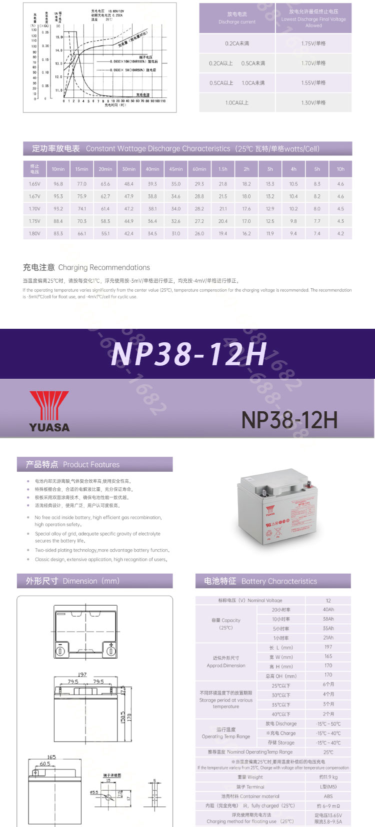 日本汤浅铅酸蓄电池NP24-12H/38/65/100AH/12V电池 是否支持加工定制 | 否 | ||