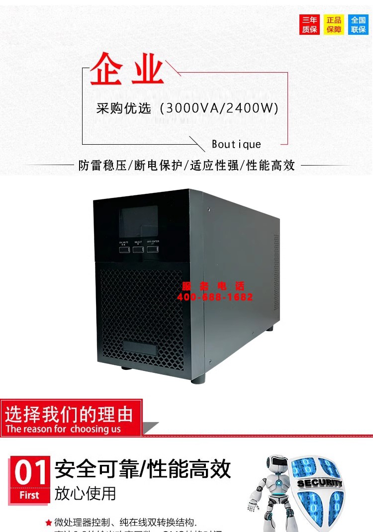 UPS不间断电源3000VA/2400W不含电池LCD塔式长效机USB/RS232 是否支持加工定制 | 否 | ||