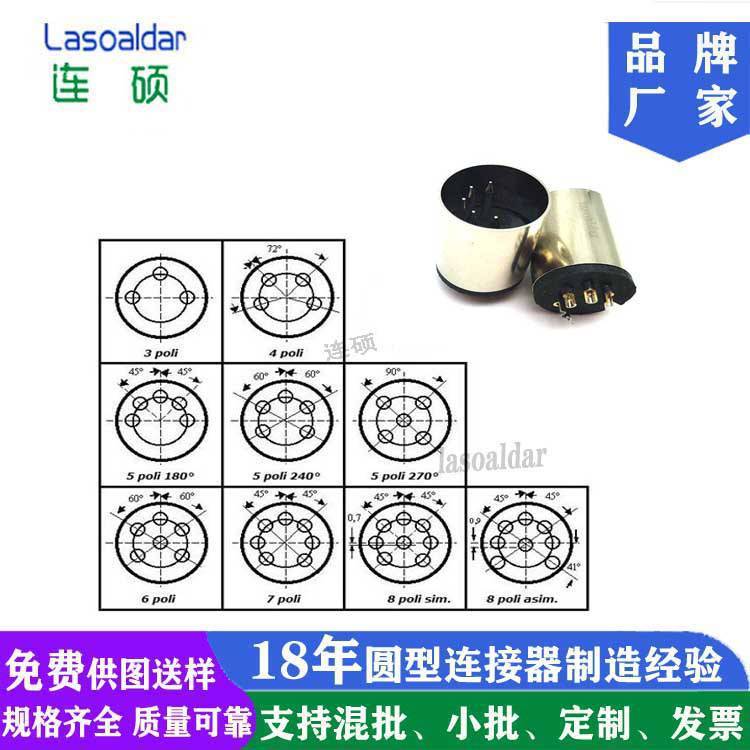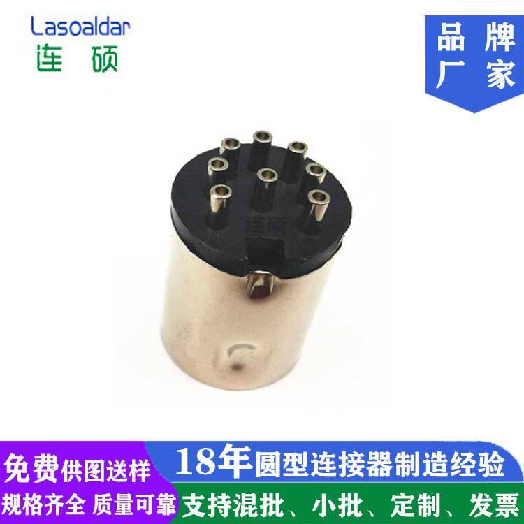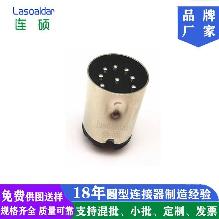 LASOALDAR连硕品牌厂家生产焊线成型式262°度大DIN8PIN公插头八芯实心车针接插件插拔力紧