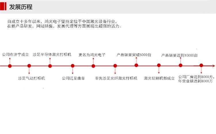山东鸿光电子科技有限公司地处环境优美 风景秀丽,交通便利,“儒家思想发源地”的山东省曲阜市,是一家专业从事标识标记设备研制开发生产销售的高科技企业,该公司将以诚实守信,信誉至上,开拓创新的经营理念,充满活力的管理机制,完善的售后服务团队,真诚方便快捷的为广大新老客户提供优质服务。公司以质量求生存,以信誉求发展,真诚欢迎社会各界新老客户前来洽谈合作,共创美好未来。