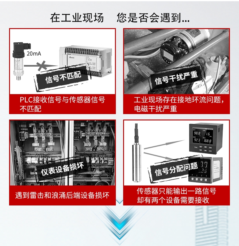 一进一出,一进两出,一进三出,一进四出,两进两出,四进四出隔离信号变送器/分配器是在自动化控制系统中对各种工业信号进行变送、转换、隔离、传输、运算的仪表,可与各种工业传感器配合,取回参数信号,隔离变送传输,满足用户本地监视远程数据采集的需求。