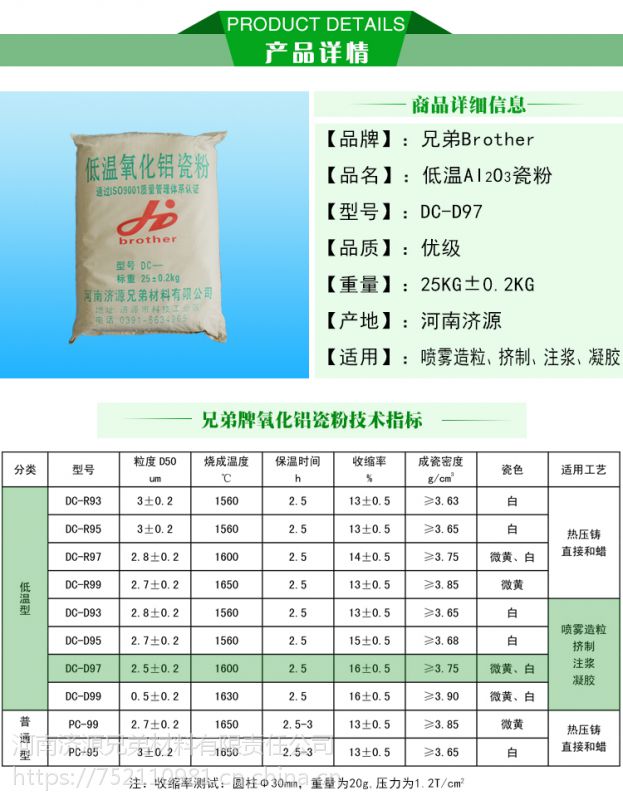 dc-d97【兄弟牌】低温氧化铝瓷粉/97%/热压铸专用/绿色节能