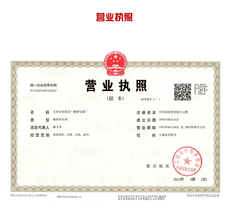 商铺名称:天津市电缆总厂橡塑电缆厂