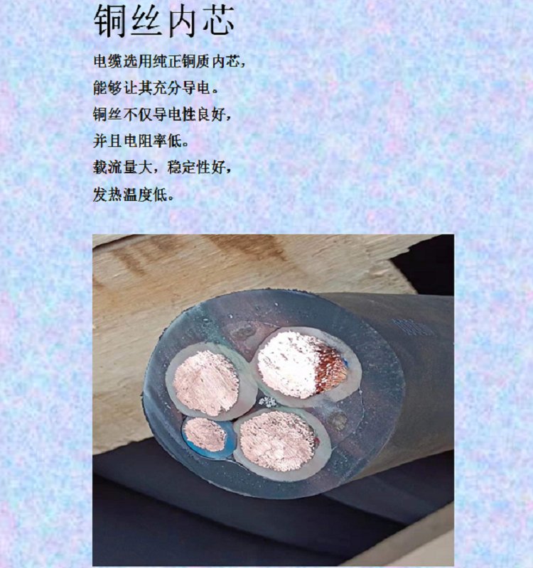 用于交流电压450/750V及以下各种移动电器设备,能承受较大的机械外力作用,长期工作温度应不超过65℃