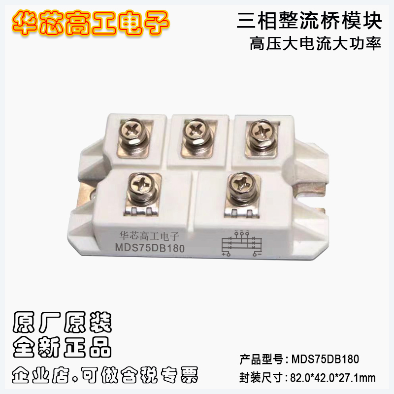 “页面标价非成交价,请联系详询报价”? ?sheier/希尔 全新原厂原装大功率三相整流桥模块:MDS75DB160;正向电流:75A;反向峰值电压:1600V;正向压降:1.1V;浪涌电流:900A;绝缘电压:2500V;尺寸体积:82*42*27cm;封装方式:大模块。