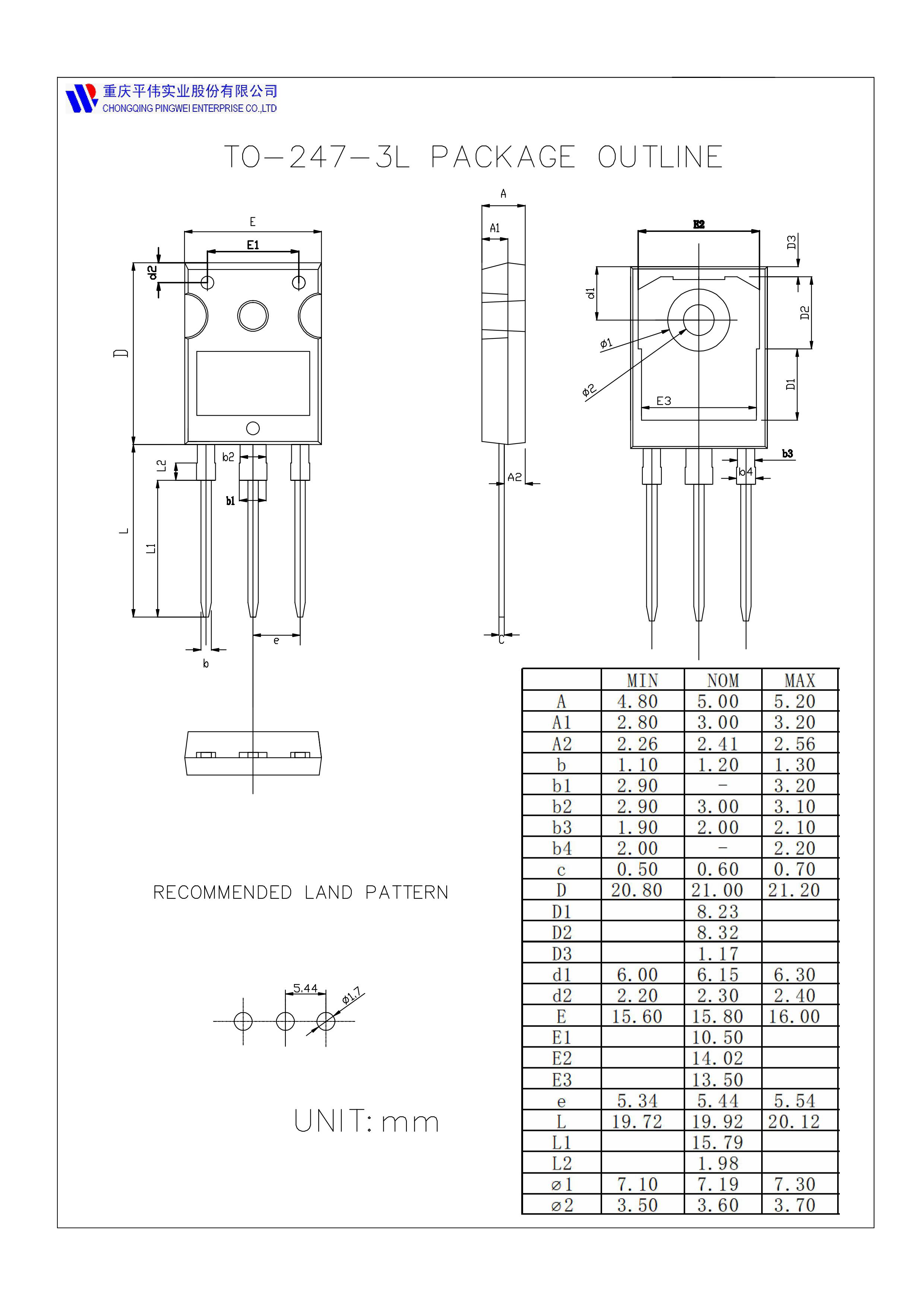 本品采用内置大尺寸芯片,具有适应高电压低内阻高频高效恢复等电气特性特点。通用于电源、电器、适配器、充电器、充电桩、工控、医疗设备、工业特种电源、高频电源、风光储新能源、逆变器、伺服电机马达等产品电路作控制、开关、整流、放大、钳位、防反接、防逆回流等作用。PY/平伟大芯片高电压大电流低漏电的分立式功率整流开关管SC040N120Y。