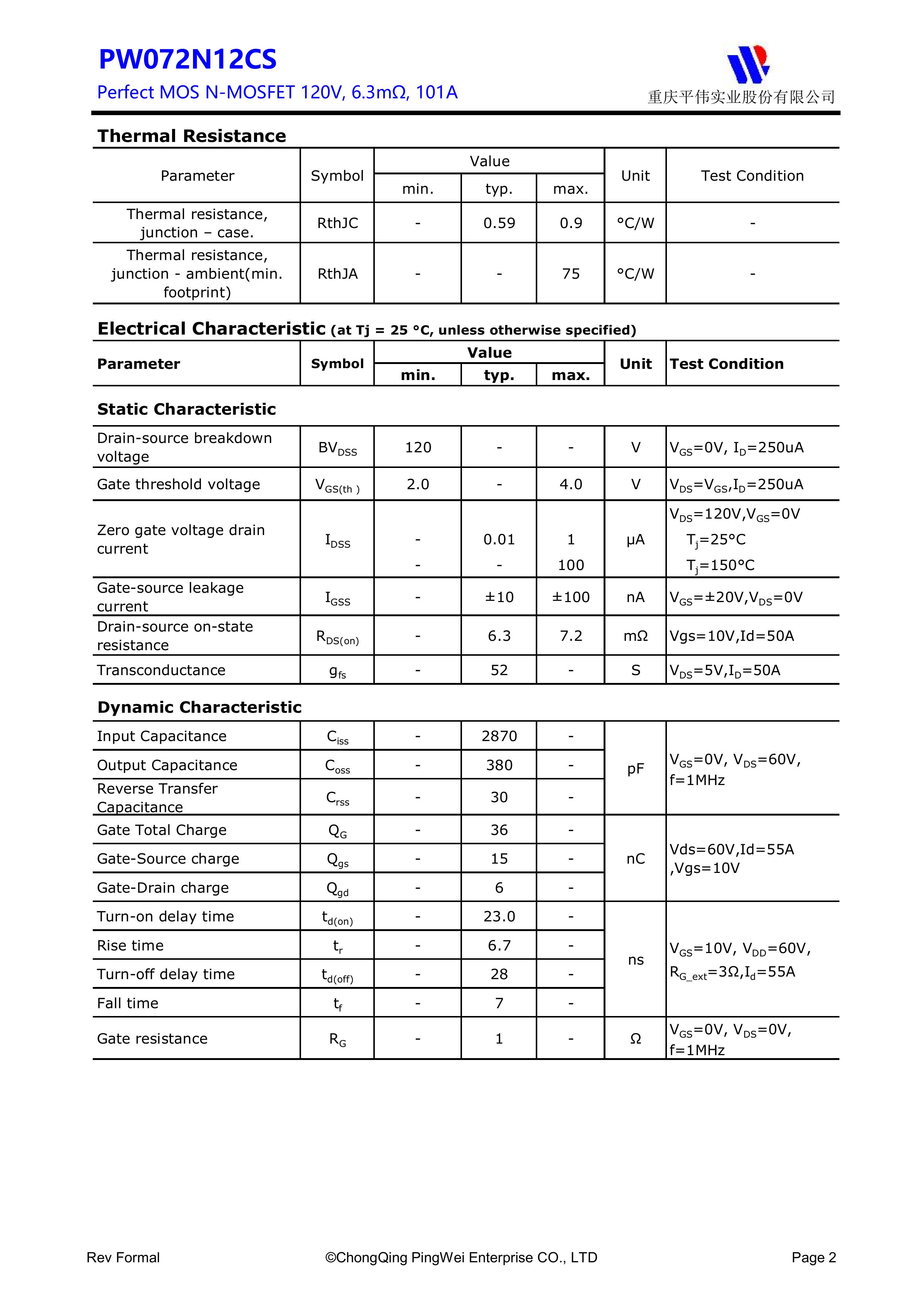 本品采用内置大尺寸芯片,具有适应中低电压低内阻损耗高频高效恢复等电气特性特点。通用于电源、电器、适配器、充电器、充电桩、工控、医疗设备、工业特种电源、高频电源、风光储新能源、逆变器、伺服电机马达等产品电路作控制、开关、整流、放大、钳位、防反接、防逆回流等作用。PY平伟大芯片中低电压大电流低内阻低漏电的分立式功率整流晶体开关管PW072N12CS。