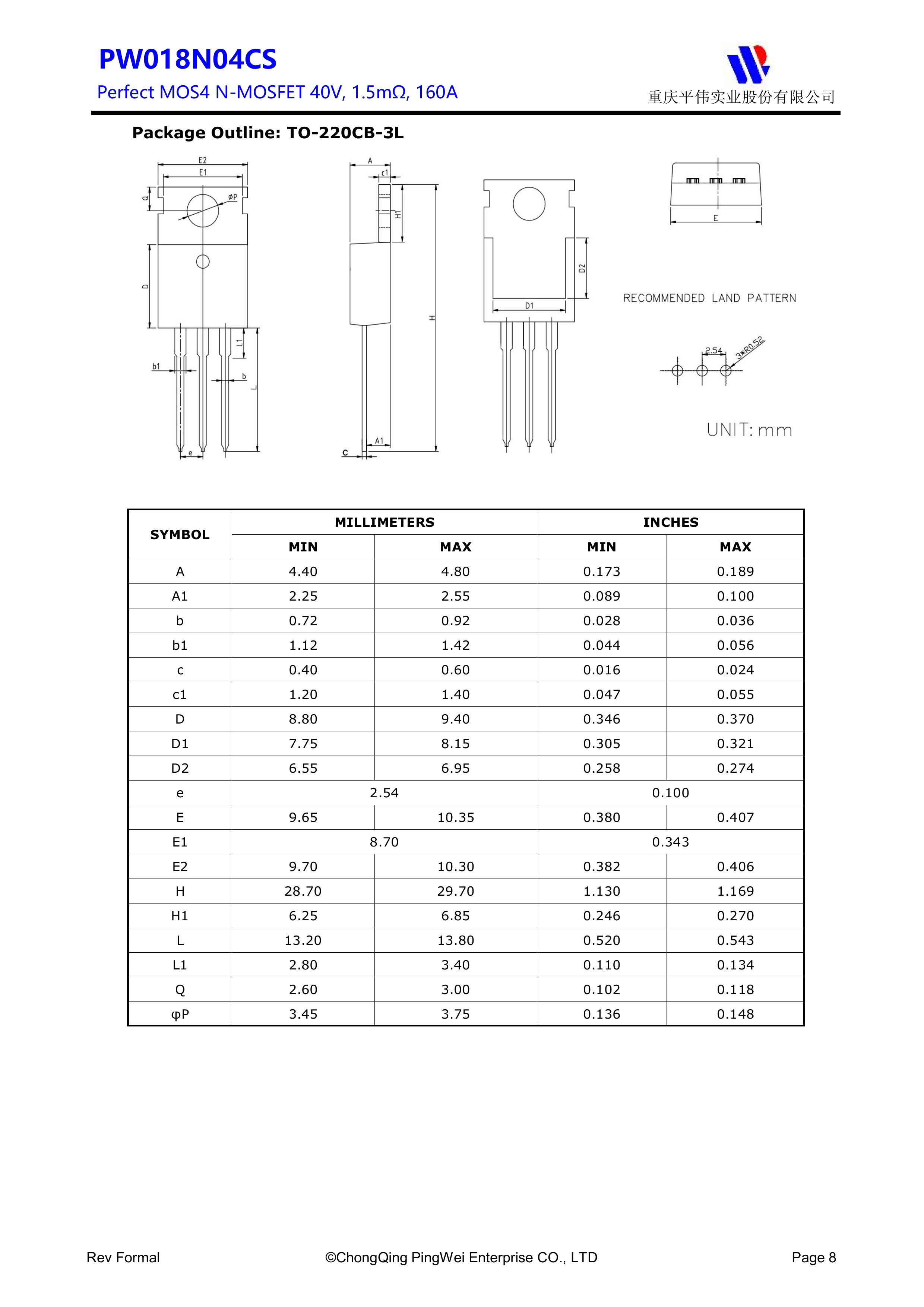 "页面标价非成交价,请联系详询报价” PY/重庆平伟实业 全新原厂原装高频中低压功率控制开关管N型沟道场效应管,40V,160A,1.5mΩ,N-Channel,中低压MOSFET:PW018N04CS;电压Vds:40V;电流Id:160A;内阻Rds(on):1.5mΩ;封装方式:TO-220-3L;最小包装数量:1000pcs/盒-管装。