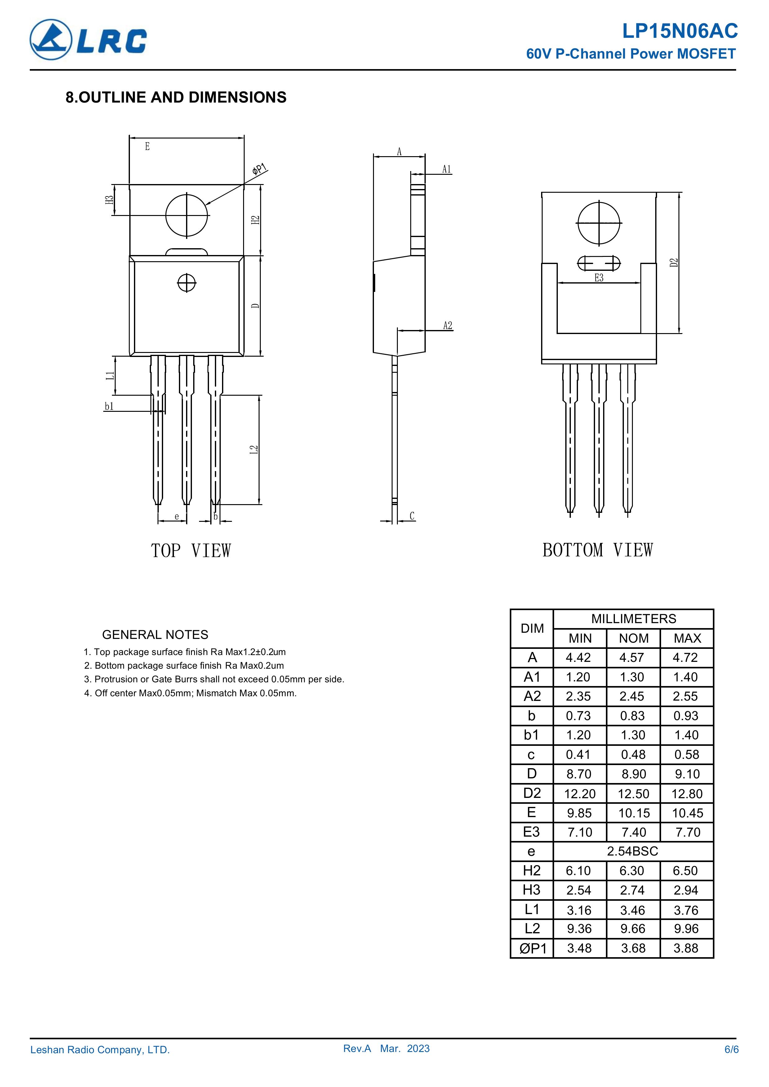 "页面标价非成交价,请联系详询报价” LRC/乐山无线电 全新原厂原装高频中低压功率控制开关管P型沟道场效应管,-60V,-15A,85mΩ,P-Channel,中低压MOSFET:LP15N06AC/15N06AC;电压Vds:-60V;电流Id:-15A;内阻Rds(on):85mΩ;封装方式:TO-220-3L;最小包装数量:1000pcs/盒-管装。