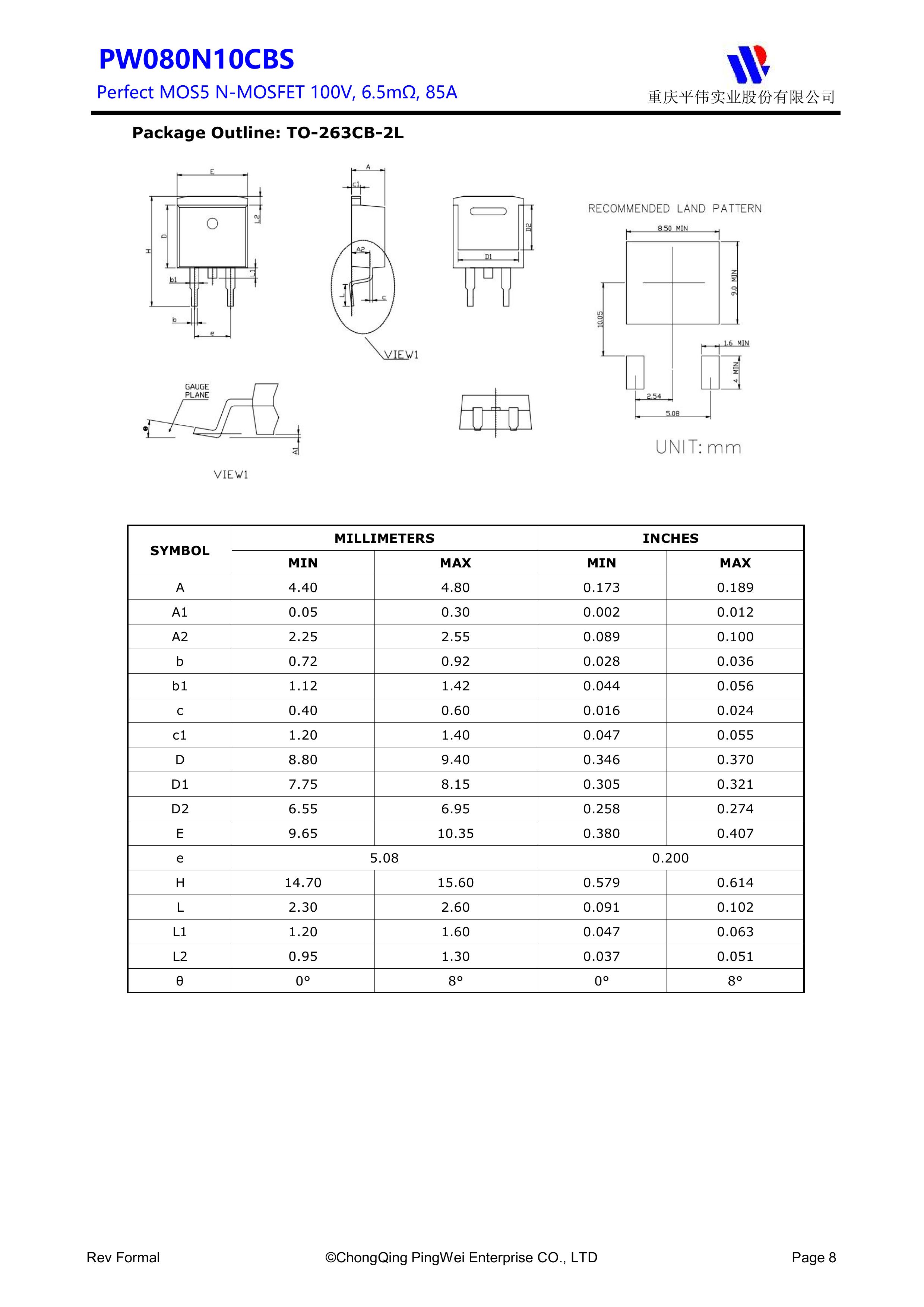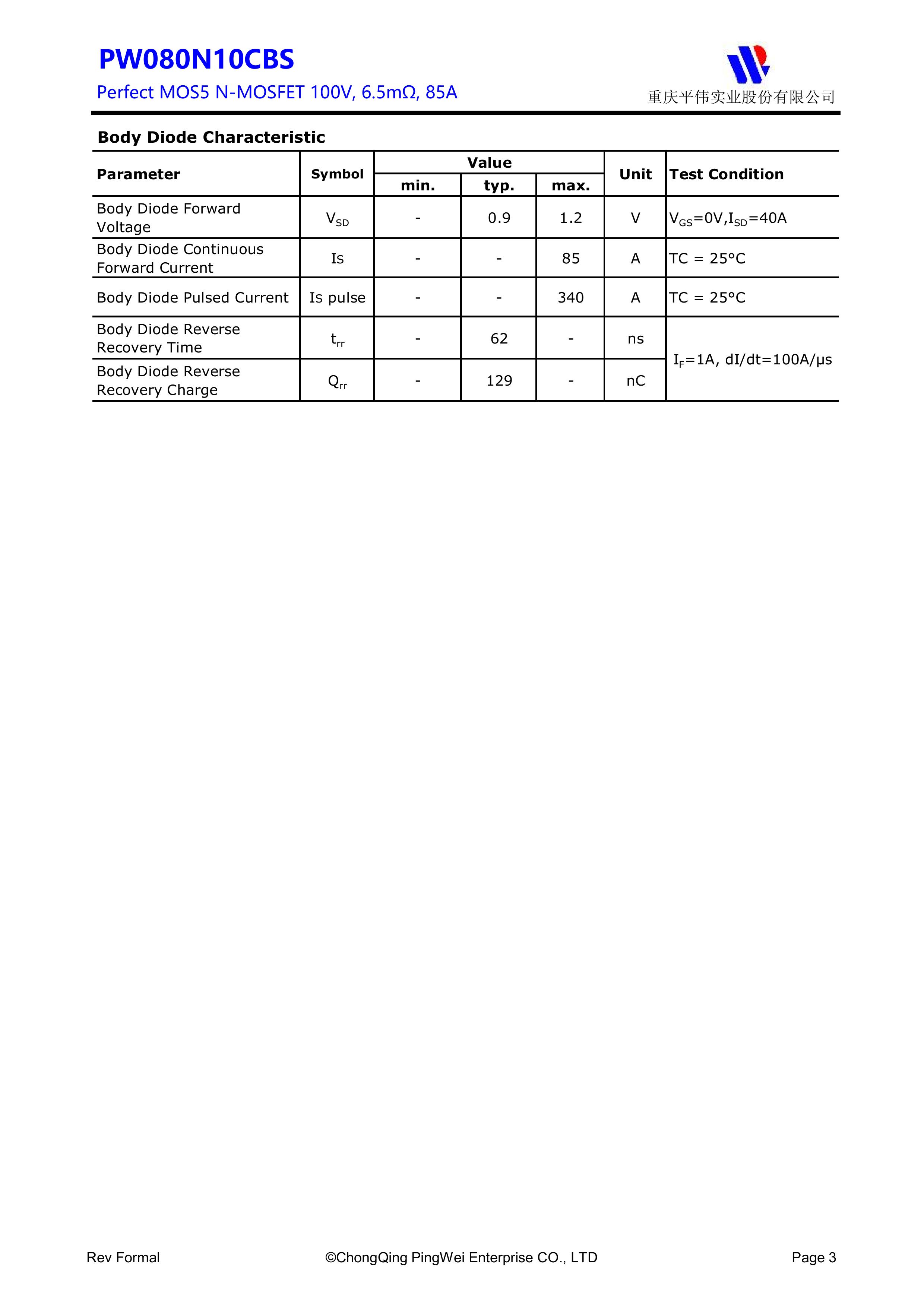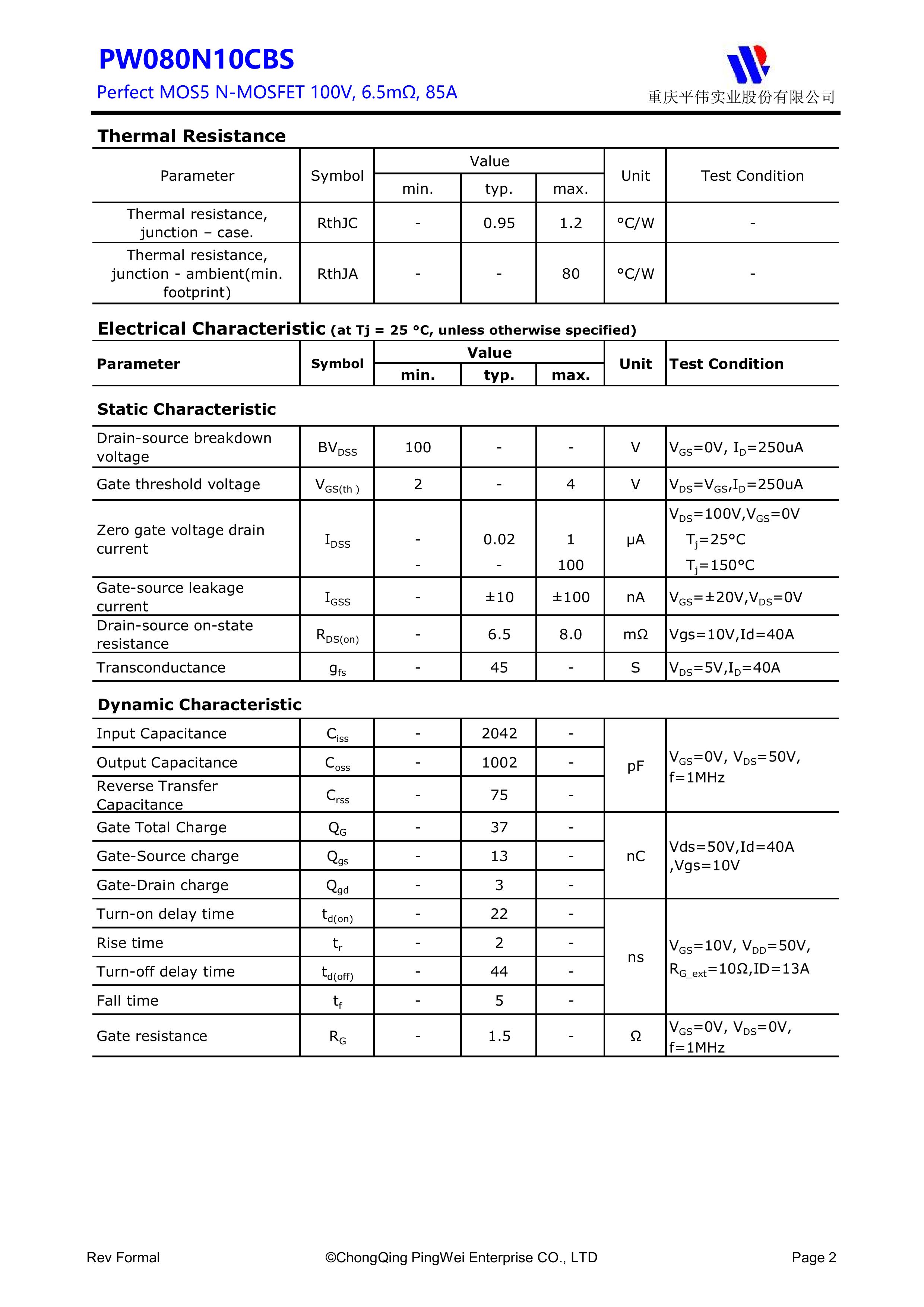 "页面标价非成交价,请联系详询报价” PY/重庆平伟实业 全新原厂原装高频中低压功率控制开关管N型沟道场效应管,100V,85A,6.5mΩ,N-Channel,贴片式中低压MOSFET:PW080N10CBS;电压Vds:100V;电流Id:85A;内阻Rds(on):6.5mΩ;封装方式:TO-263-2L;最小包装数量:800pcs/盘-编带。