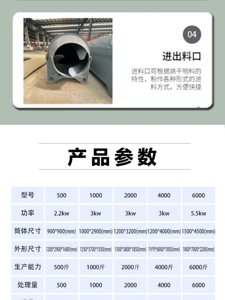 工作原理 | 通过滚筒不停转动实现均匀导热完成烘干 | ||