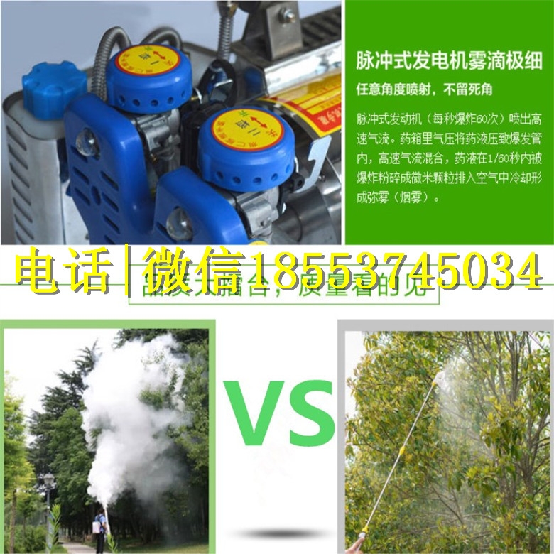 该烟雾机启动时方法如下:先用手按住点火开关(此时听到哒、哒、哒的点火声)握住气筒进行打气,机械启动后,先预热1分钟左右,当听到机械平稳而有力的声音后,便可正常工作(一般情况下,燃料比较多时,打气时轻一些。燃料较少时,打气时用力一些。)启动前检查塑料桶盖是否拧紧,桶盖不严漏气,机械不能正常喷雾。