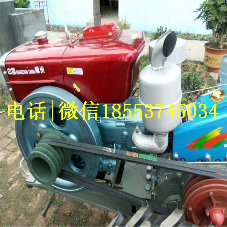 多采用卧式单缸柴油机,发动机的动力由三角皮带传给传动系,由离合器控制动力的转速。动力经链条传。