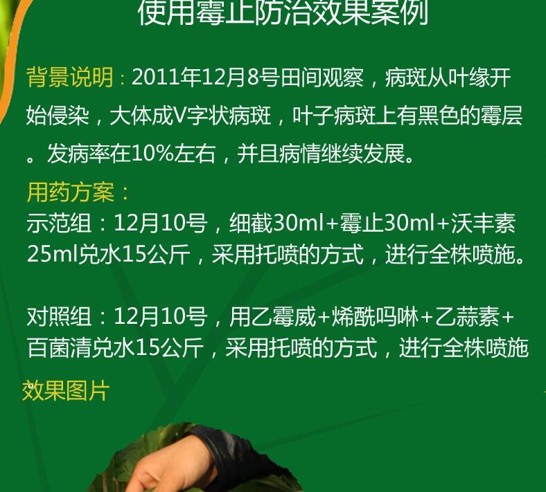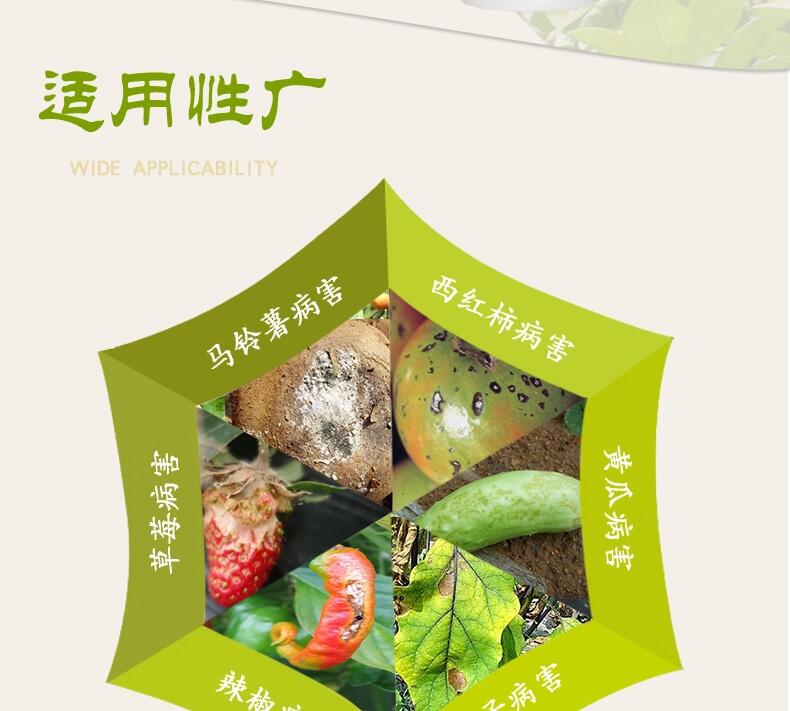 防治方法:黄瓜地应选在地势较高,排水良好的地块。雨后适时中耕,以提高地温,降低空气湿度。温室采取滴灌或覆膜灌溉。黄瓜定植缓苗后,植株生长速度加快,霜霉病容易发生,可在此期间喷施沃丰素600倍+靓果安300倍,提供植株生长所需的营养,同时能杀灭真细菌,阻断病源。黄瓜开花后,植株由营养生长期转入生殖生长和营养生长并进的时期,叶片营养较以前差,植株抗病性较弱,应使用霉止500倍+沃丰素600倍+大蒜油1000倍喷雾。若后期出现霜霉病,可用霉止+沃丰素600倍+大蒜油1000倍+苯醚甲环唑2000倍喷雾。