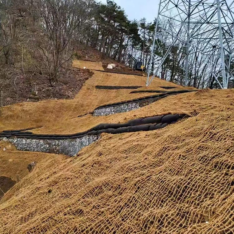 椰网,广西椰网,南宁椰网又称椰纤维网(CF网),用100%的椰子纤维做成的网状结构。椰子纤维是硬纤维和床垫纤维的混合体,含0.25%半纤维素酶、45%木质素、43%纤维素和4%胶质,有较低的伸长率和高抗拉强度;CF网有较高的耐腐蚀能力,一般生物降解时间约为3-5年。CF网在边坡上的使用,增加了坡面粗糙度,降低流速,由于是网格状,能将坡面径流变为漫流,减少坡面冲刷;同时椰子纤维能吸收一部分水分,能截留部分雨水,增加坡面保水能力。CF网是一种新型环保材料,在灌为主、草为辅种植时,表层加设具有较高抗冲刷能力的CF网,以保障前期灌木生长时,基材和种子不流失。