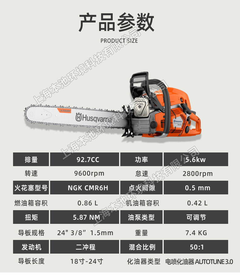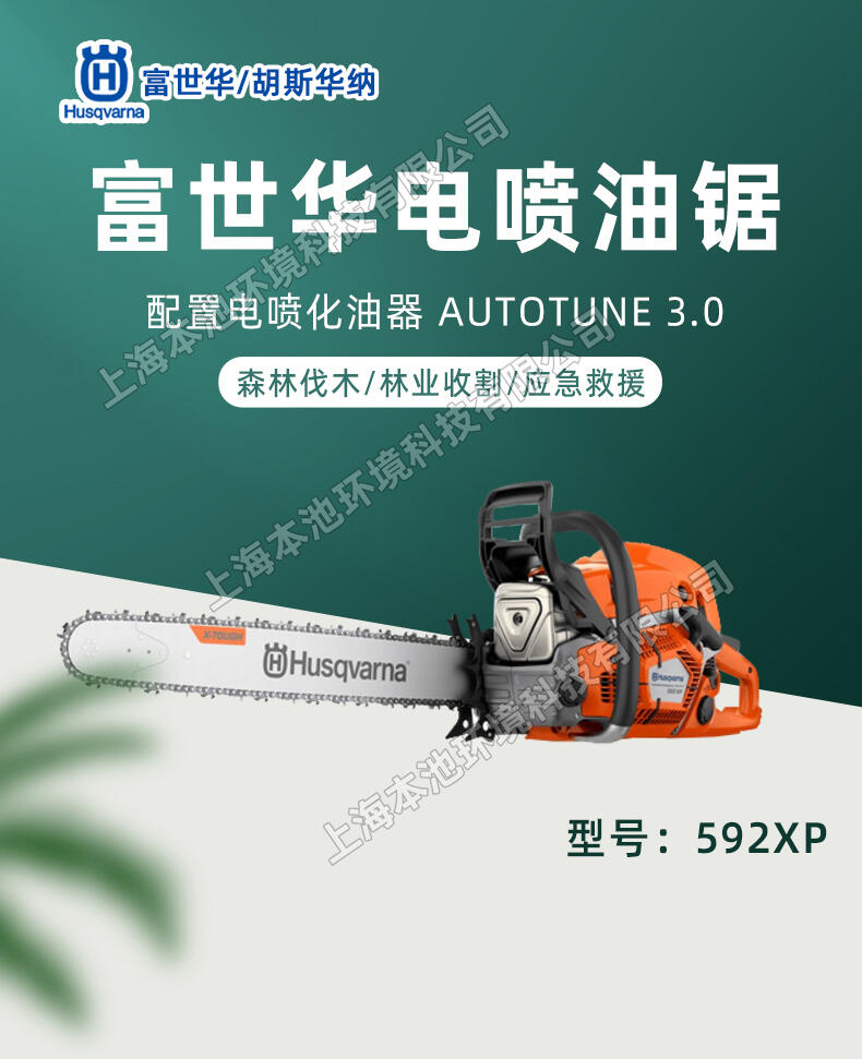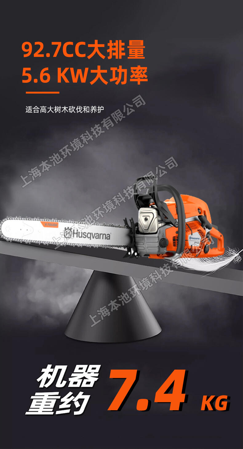 Husqvarna富世华/胡斯华纳592XP森林消防汽油链锯,二冲程混合油5.6KW大功率汽油锯,24寸高硬度合金导板,链条耐磨不易断,启动拉盘,轻轻一拉,即可启动,离心式清洁进气系统,可减小发动机磨损,延长气滤清理间隔周期,可快速拆卸气滤,配备X-TORQ发动机,使其减少燃油消耗和废气排放,操作方便,可进行快速伐木。作用用途多,如森林伐木,劈柴打枝,伐木锯柴,竹林收割等。