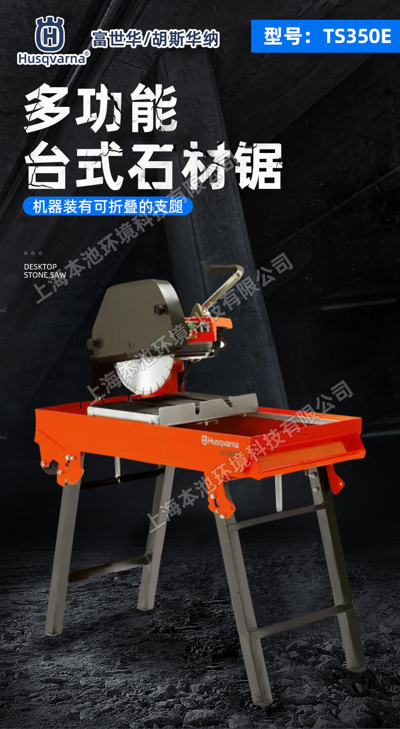 Husqvarna富世华/胡斯华纳TS350E台式切割机,台式石板混凝土砖块切割机。插电式设计,1.5-2.2KW大功率切割机。台式切割锯可随意移动。安装方便。简单易操作。适用于多种石板,瓷砖,石块等型材切割。