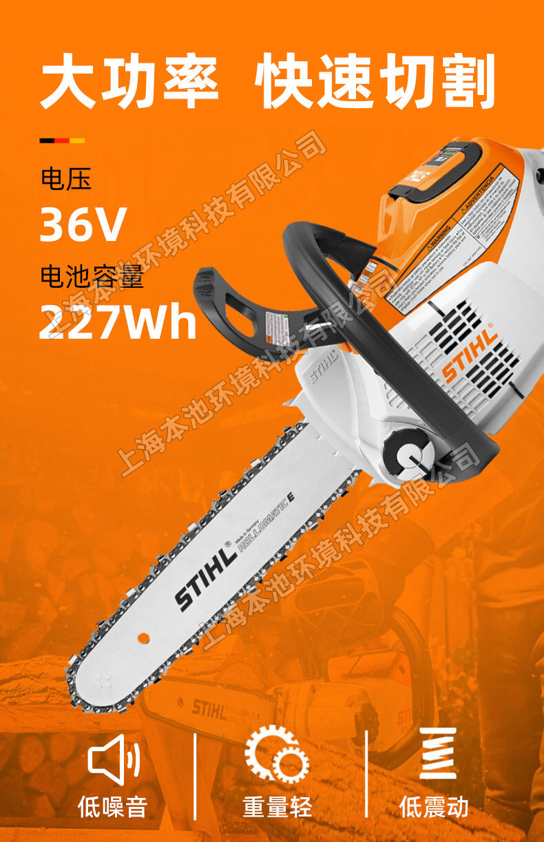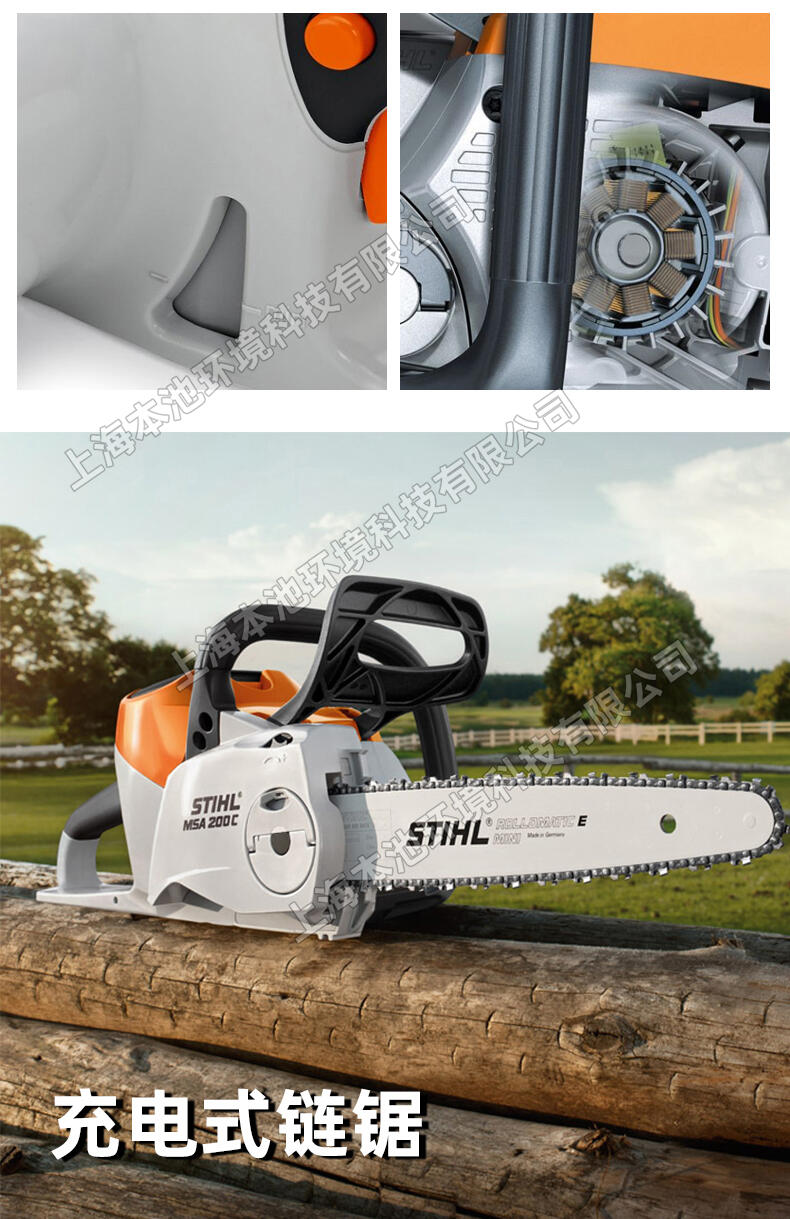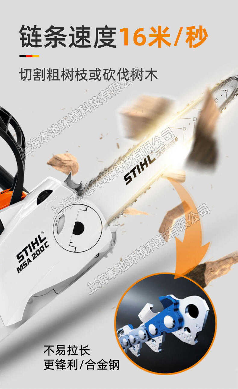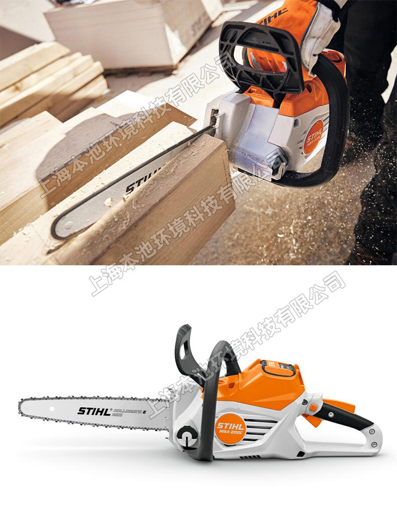 STIHL斯蒂尔MSA200C锂电锯,手持式森林伐木砍树锯。切割粗枝或砍伐树木。36V锂电设计。小巧轻便易携带。雨天防水防漏电设计。简单易操作。适用于多种场合,树木修枝,园
