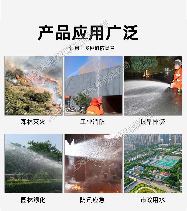 LINHAI林海SFBA30/2-B水泵,扬程690米,水平射程33米,10.5KW大功率。可以通过天然水源或水罐车供水,向山坡上铺设水带至着火点直接进行消防扑救适用手山体海拔相对较高区域。适用于山体海拔相对较高区域。适用于多种场合森林灭火、森林消防、城市供水等。