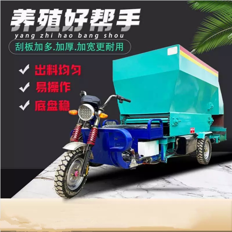 撒料车的主要功能是将成品日粮直接抛撒在饲喂区域内一次性完成饲喂,广泛用于农牧业养殖区,大中型饲养场和规范社区饲养场的饲喂作业,可将各种牧草,农作物秸秆,青贮饲料等纤维性饲料混合搅拌均匀后,投入本车内,进行投喂作业。使用简单方便,易于操作,产品质量可靠,经久耐用,撒料过程中可根据用户的圈宿牲畜的密度调节饲喂料,使用效率高,省时省力,节省养殖场空间。